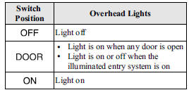 • The rear map light illuminates/turns off when you turn the overhead light switch on or off.