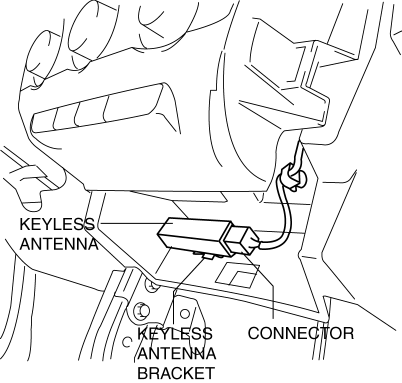 Disconnect the connector while holding the keyless antenna, otherwise the keyless antenna bracket could be damaged.