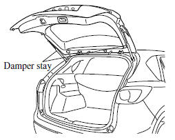 Be careful not to apply excessive force to the damper stay on the liftgate such as by putting your hand on the stay. Otherwise, the damper stay may bend and affect the liftgate operation.
