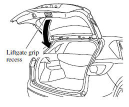 To close, lower the liftgate slowly using the liftgate grip recess, and then push the liftgate closed using both hands.