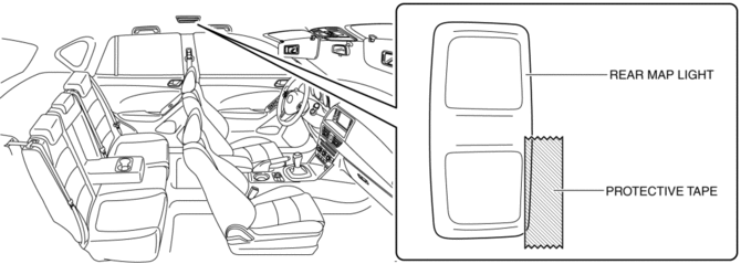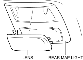 If a flathead screwdriver is inserted into the gap between the rear map light and lens, the rear map light could interfere with the flathead screwdriver resulting in damage to the rear map light. When removing the lens from the rear map light, perform the procedure after affixing protective tape to the rear map light.
