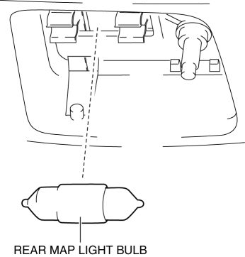 7. Move the rear map light spring in the direction of the arrow (2) shown in the figure and detach the rear map light spring and rear map light bulb.