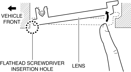 4. Insert a tape-wrapped flathead screwdriver into the gap between the lens and front map light shown in the figure.