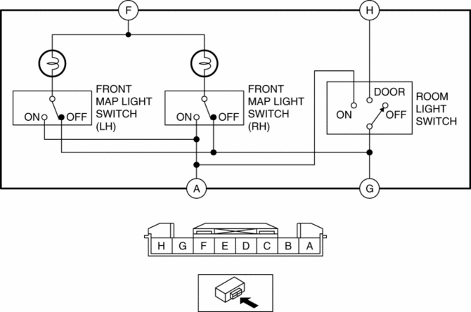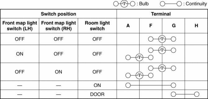 3. Verify that the continuity between the front map light terminals is as indicated in the table.