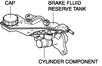 Except for the cap and brake fluid reserve tank, the master cylinder cannot be disassembled. Therefore, if there is any malfunction in the interior of the master cylinder, replace the cylinder component without disassembling.