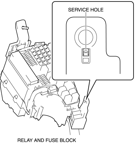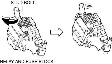 7. Pull out the relay and fuse block from the stud bolt and set it aside as shown in the figure.