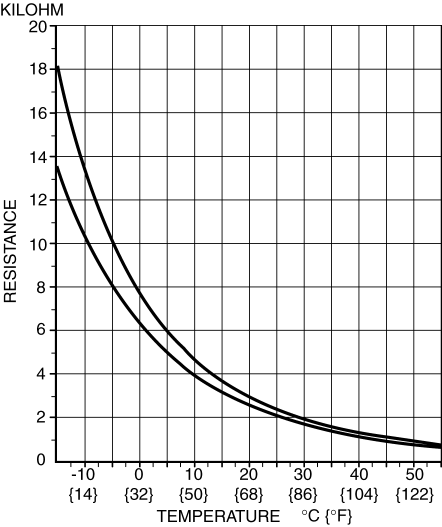 If the characteristics of the passenger compartment temperature sensor are not as shown in the graph, replace the passenger compartment temperature sensor.