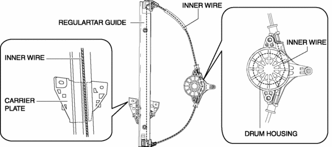 The inner wire is assembled to the inner side of the regulator guide and wrapped to the drum housing.