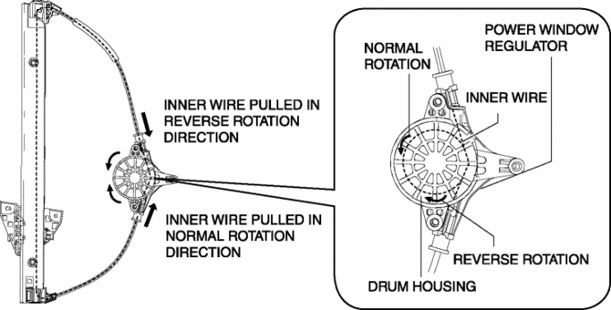 1. When the drum housing of the power window regulator receives the rotation force from the power window motor, it rotates in the same rotation direction as the power window motor.
