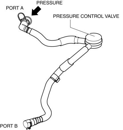 Do not apply a pressure 36 kPa {0.37 kgf/cm2, 5.2 psi} or more. Doing so will damage the pressure control valve and evaporative hose.