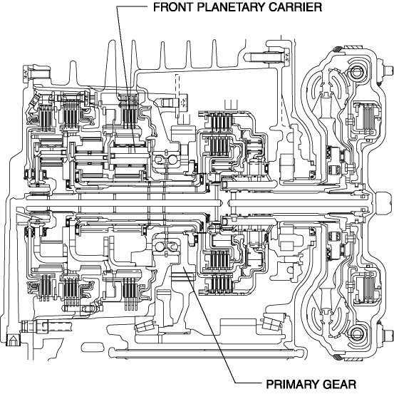 The primary gear is engaged with the front planetary carrier and rotates as a single unit.