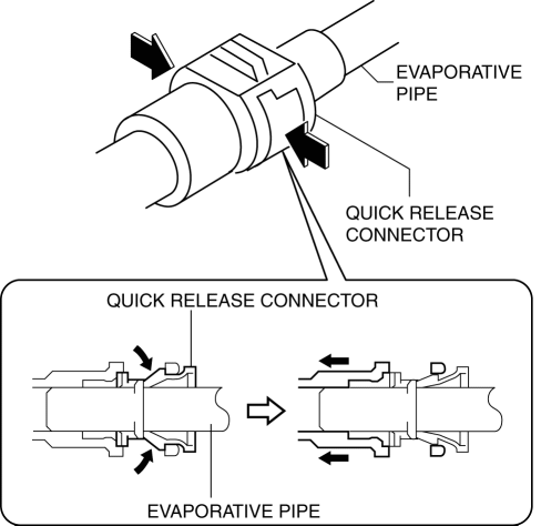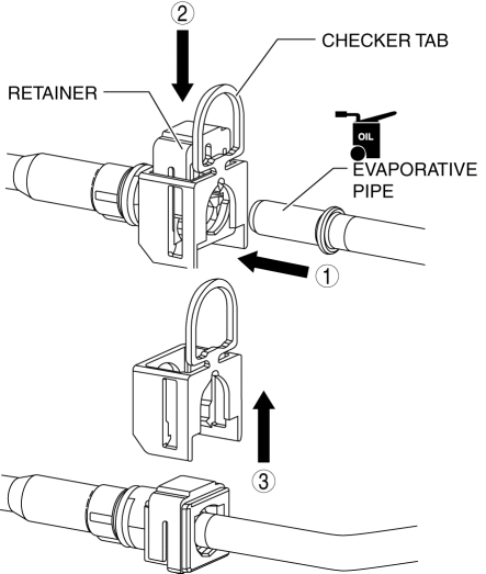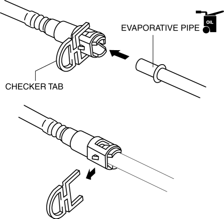 A checker tab is integrated with the quick release connector for new evaporative hoses. Remove the checker tab from the quick release connector after the connector is completely engaged with the evaporative pipe.