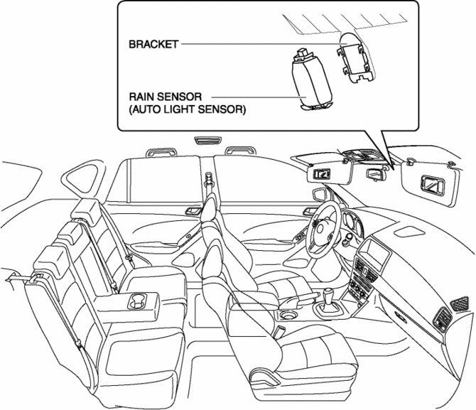 The rain sensor is installed to the bracket in the upper center part of the windshield.
