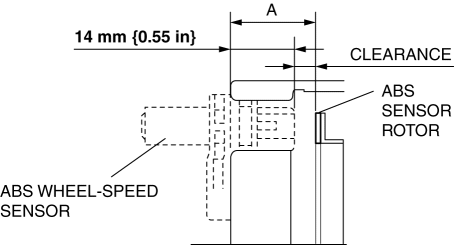 2. Measure the distance between the ABS wheel-speed sensor installation surface and the ABS sensor rotor. This is dimension A.