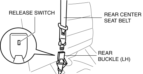 1. Press the release switch, then disconnect the rear center seat belt and rear buckle.