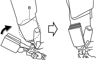 1. Grasp the seat belt tongue (C).