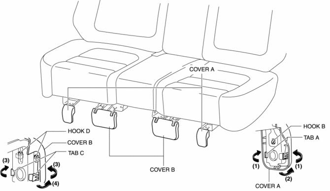 When performing the procedure with a rear seat removed from the vehicle, perform the procedure on a clean cloth so as not to damage or soil the seat.