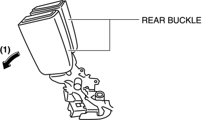 1. Before carrying the rear seat into the vehicle, shift the rear buckle in the direction of the arrow (1).