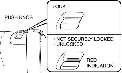 If red indication can seen on the push knob, it indicates that the seat back is not locked securely or unlocked.