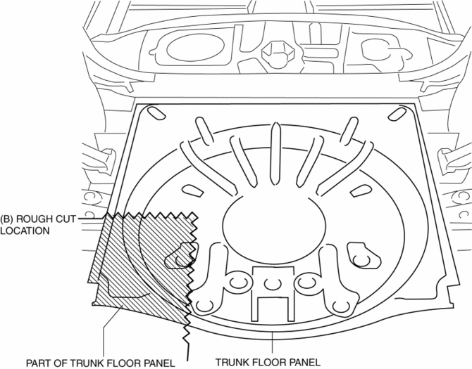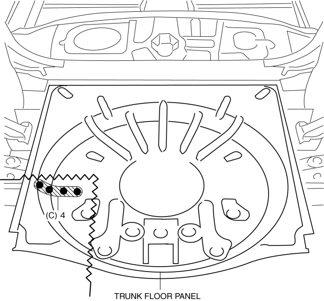 3. Drill the 4 locations indicated by (C) shown in the figure, then remove the part of trunk floor panel.