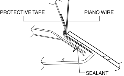 7. Avoiding the pin on the inside of the vehicle, insert piano wire which has been cut to sufficient length.
