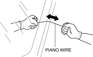 9. Secure one end of piano wire, and while pulling the other end, cut the sealant around the rear window glass.