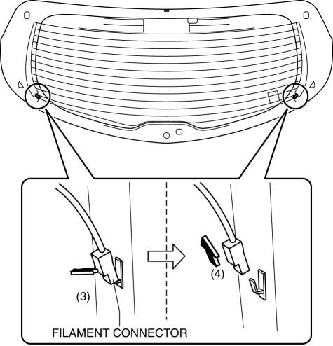 5. Disconnect the filament connectors in the direction of the arrow in the order of (3), (4) shown in the figure.
