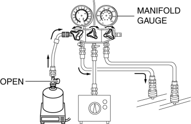 1. Open all the valves of the manifold gauge.