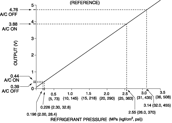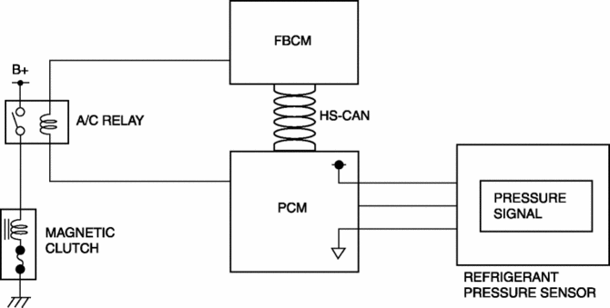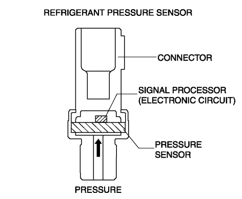 The refrigerant pressure sensor converts the detected refrigerant pressure to an electric signal and sends it to the PCM.