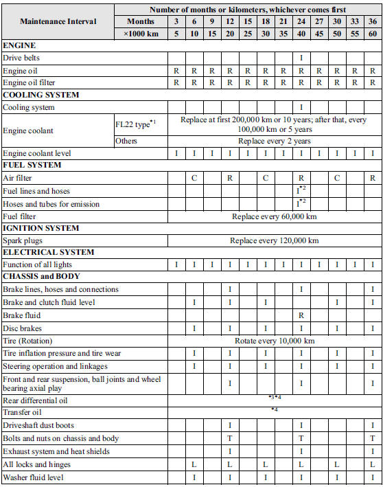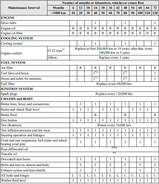 *3 If the vehicle is operated primarily under any of the following conditions, replace the rear differential oil at every 45,000 km.