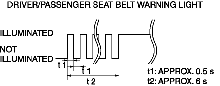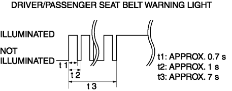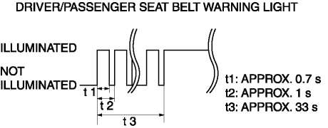 The driver/passenger seat belt warning flash/illumination pattern is as shown in the figure.