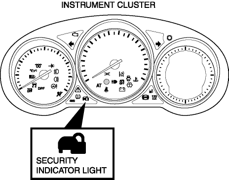 If the immobilizer system is normal, the security indicator light illuminates for approx. 3 s and then turns off after the push button start is pressed.
