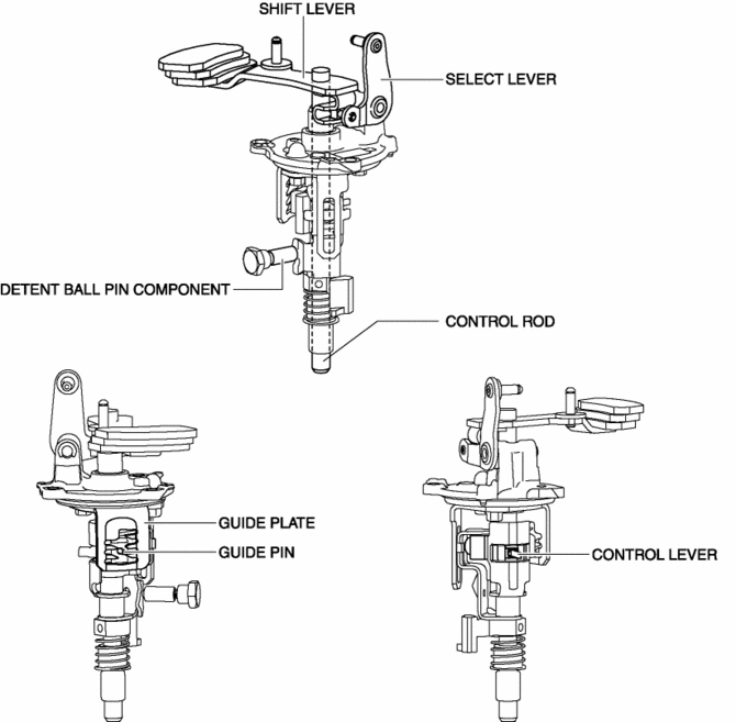 4. Following the movement of the select lever, the control lever and the guide pin move in the direction of arrow 4 shown in the figure.