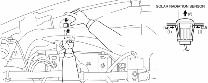 3. Press the tab from the inside of the dashboard and press out the solar radiation sensor as shown in the figure.