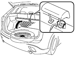 Store the spare tire in the reverse order of removal. After storing, verify that the spare tire is stored securely.