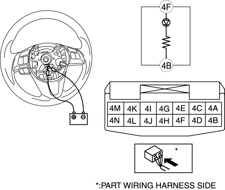 6. Apply battery positive voltage to steering switch terminal F, and connect terminal B to ground.