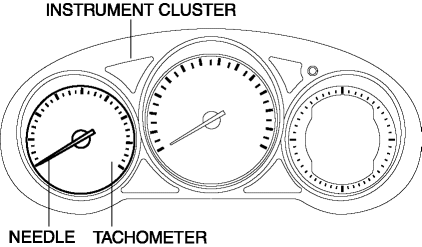 The instrument cluster controls the tachometer needle based on the engine speed signal from the PCM and displays the engine speed per minute.