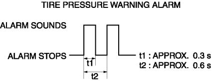 The tire pressure warning alarm sound pattern is as follows: For the conditions in which each alarm pattern sounds, refer to TIRE PRESSURE MONITORING SYSTEM (TPMS).