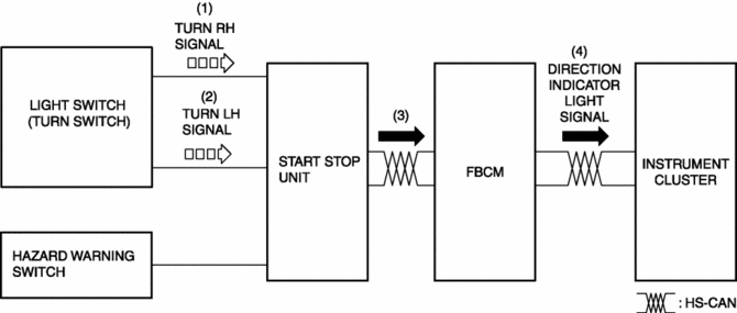 1. When the turn switch is operated to the RH position, a turn RH signal is input to the start stop unit.