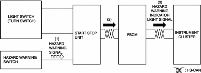 1. When the hazard switch is turned on, a hazard signal is input to the start stop unit.