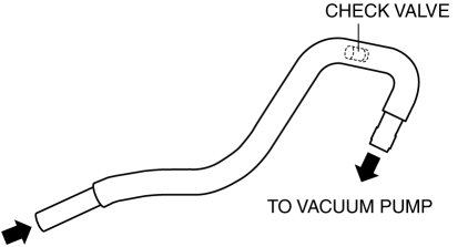 2. Verify that air can be blown from the power brake unit side of the vacuum hose towards the vacuum pump side, and that air cannot be blown in the opposite direction.