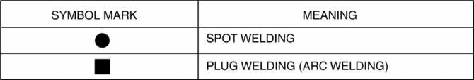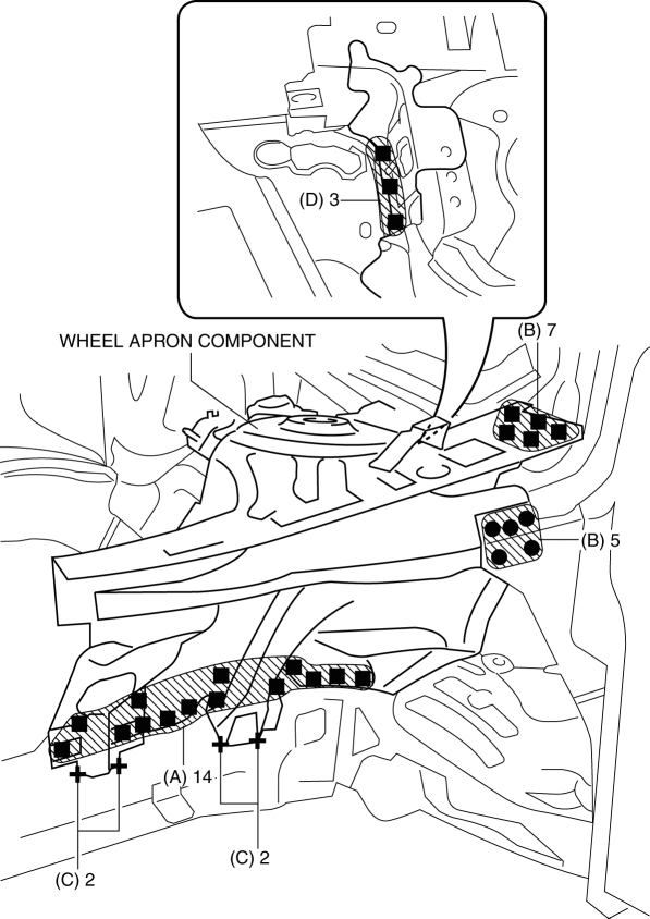 4. Plug weld the 14 locations indicated by (A) from the front wheel housing side shown in the figure.