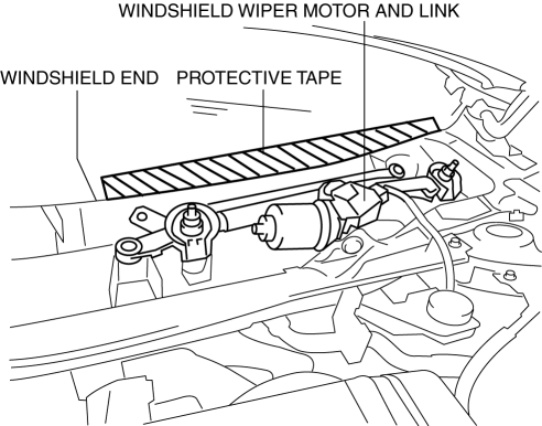 Always affix protective tape to the windshield end. If the windshield wiper motor and link contacts the windshield, it could damage the windshield.