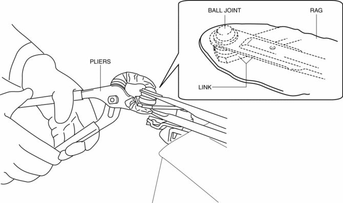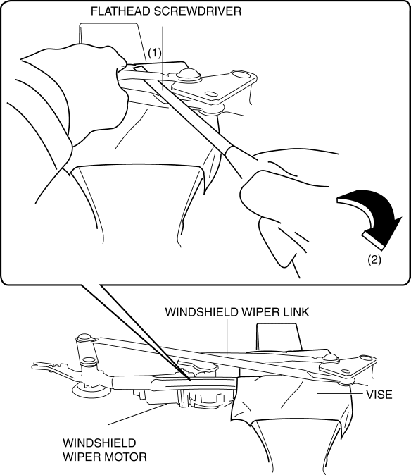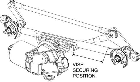 If the vise is tightened with excessive force, it could deform or damage the windshield wiper link. When securing the windshield wiper link in the vise, be careful not to deform or damage the windshield wiper link.
